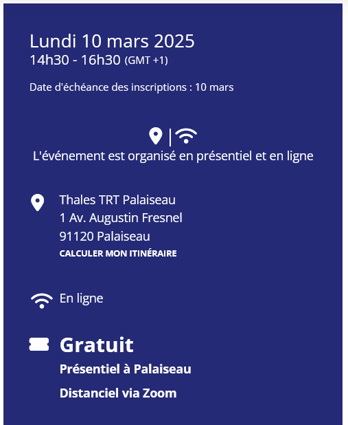 Cette conférence est organisée par le groupe « Conférences techniques ».